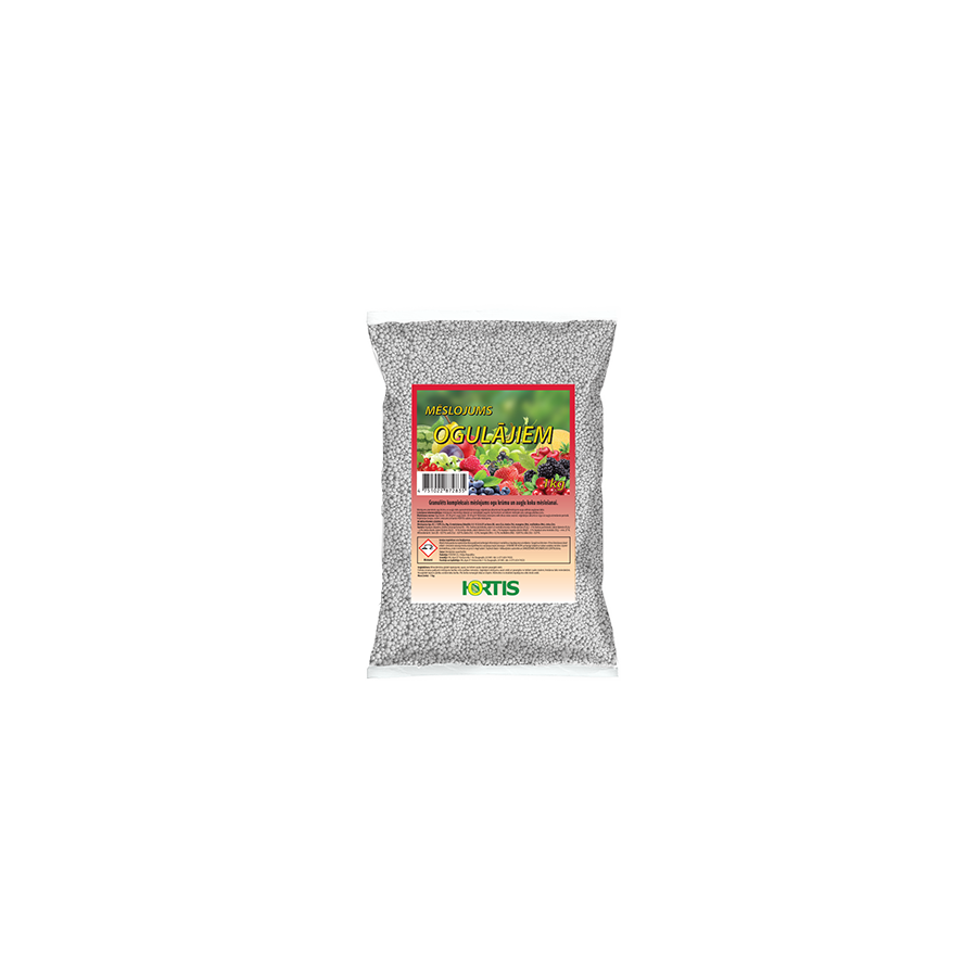 Granulēts kompleksais mēslojums ogu krūmu un augļu koku mēslošanai.