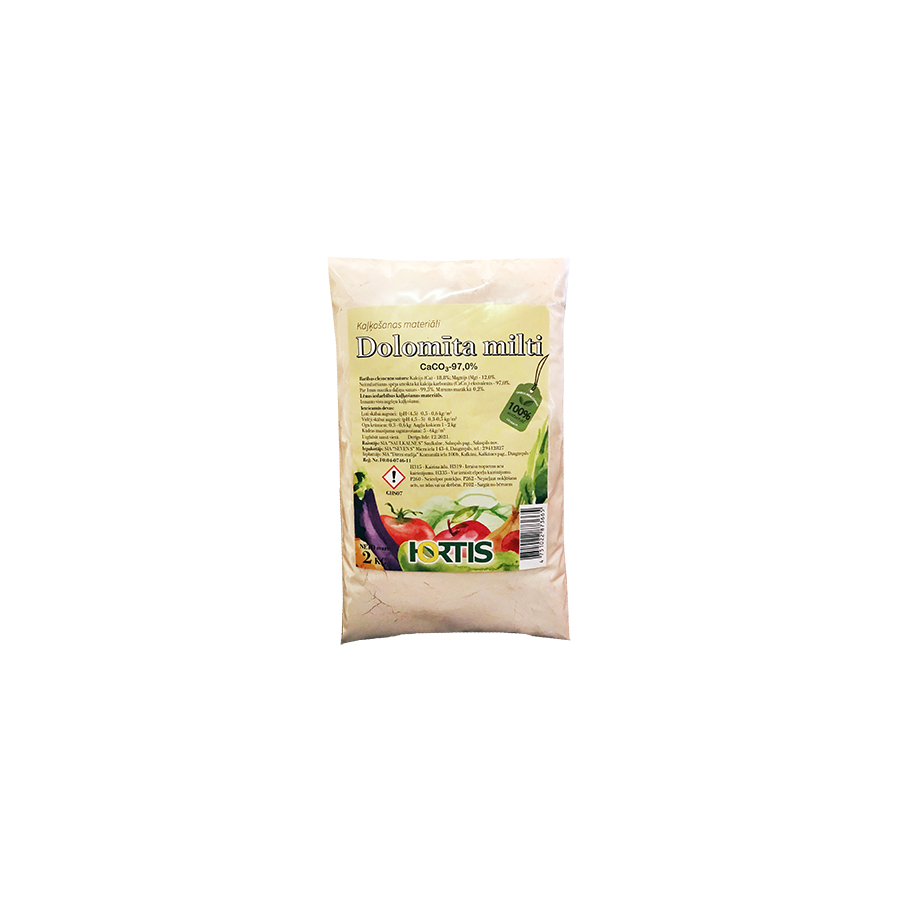 Barības elementu saturs: Kalcijs (Ca) - 18,8%; Magnijs (Mg) - 12,0%.