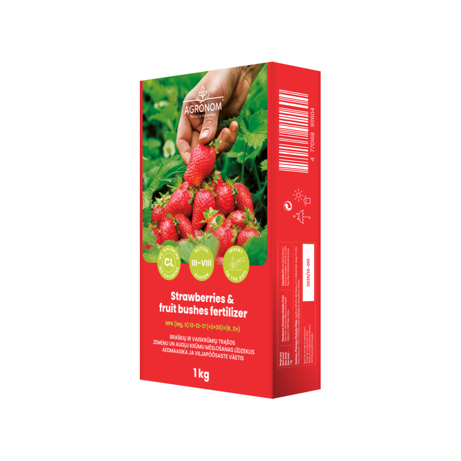 Granulēts hloru nesaturošs kompleksais mēslošanas līdzeklis – paredzēts dārza augu stādāmā materiāla un stādu, zemeņu un meža zemeņu, ogulāju, augļu krūmu un augļu koku mēslošanai