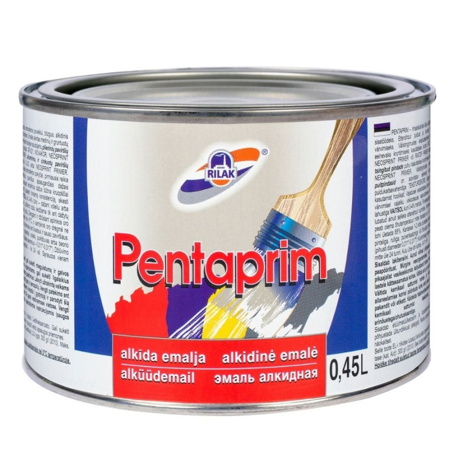 PENTAPRIM – atmosfēras izturīga spīdīga alkīda emalja ārdarbiem un iekšdarbiem. Paredzēta koka un gruntētu metāla virsmu krāsošanai.
