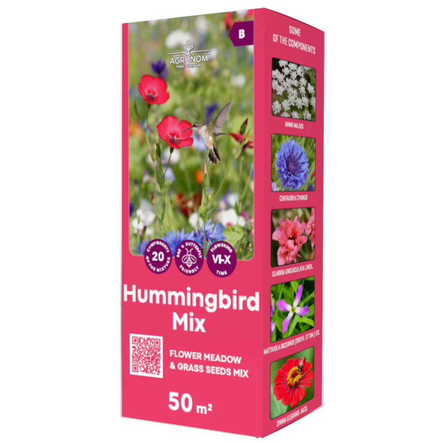 Ziedoša puķu pļava kastītē – piepildiet savu apkārtni ar lauka puķēm, izmantojot HUMMINGBIRD maisījumu. Viegli audzējamu lielisku lauku puķu maisījums padarīs skaistāku dārzu un piesaistīs tik noderīgās bites un kukaiņus. Ar ziedošu pļavu var apzaļumot nogāzes un grūti pieejamas vietas zemes gabalā, kur mazāk tiek staigāts, lai radītu lauku vides sajūtu.